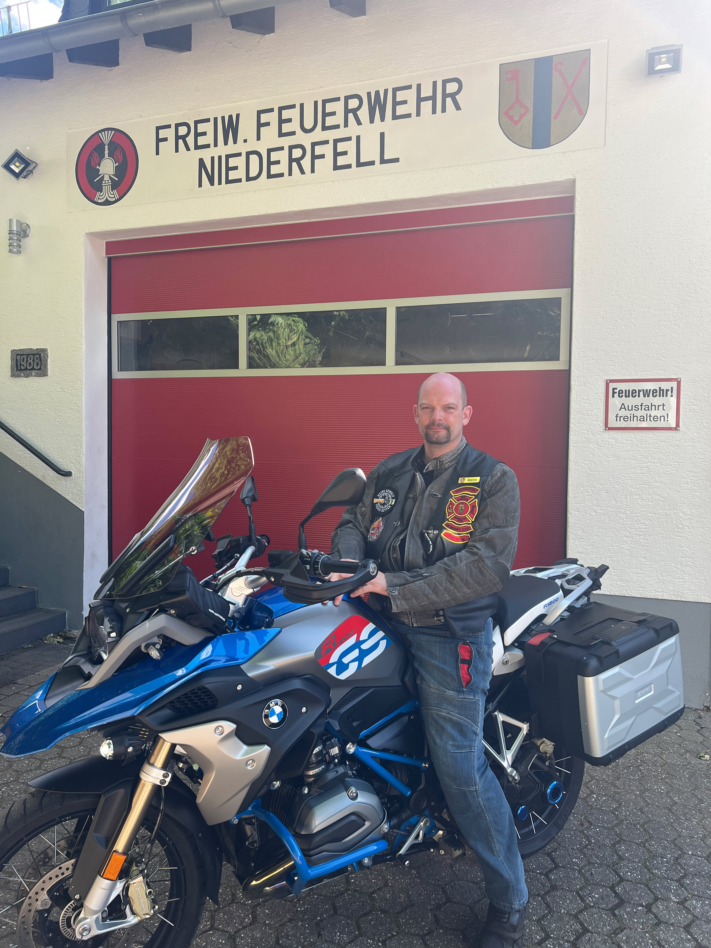 Und wie es sich für einen „Red Knight“ gehört, wurde er natürlich auf dem Motorrad und bei der Feuerwehr verbracht.