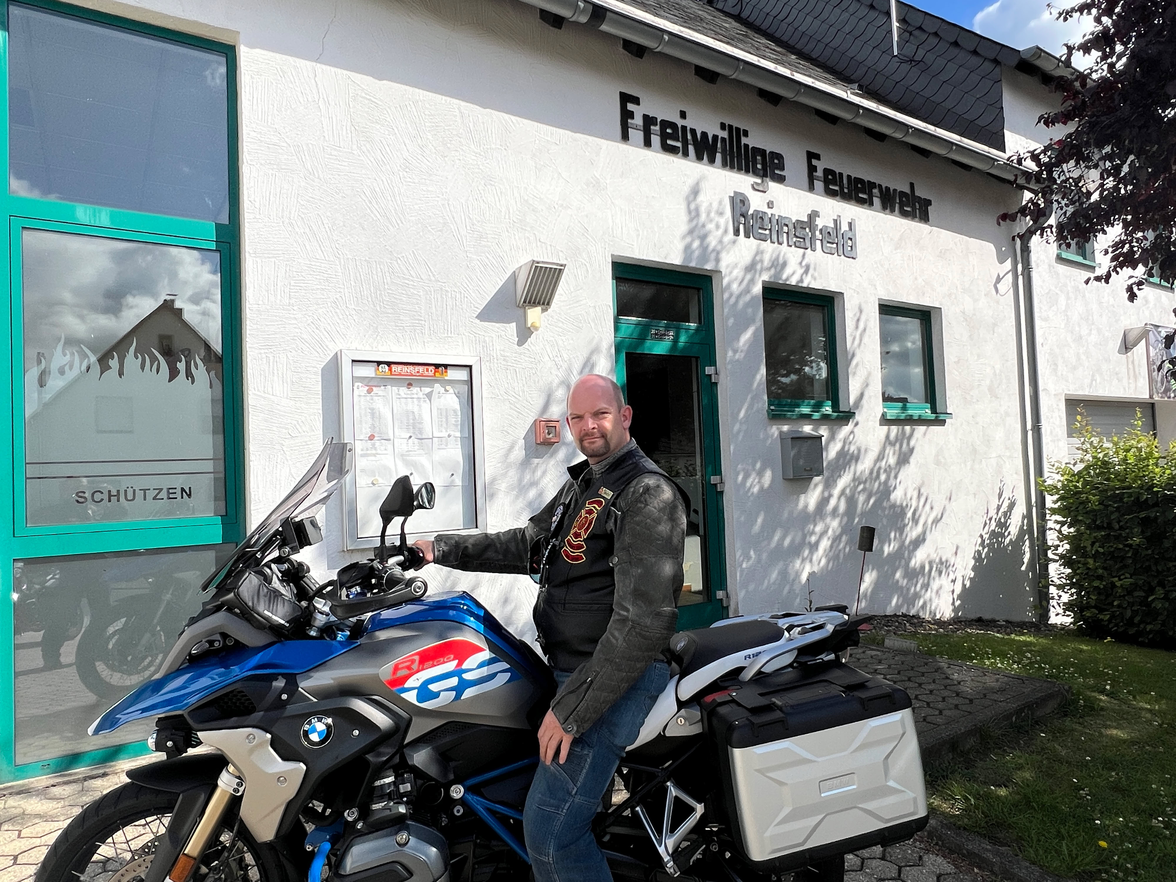 Und wie es sich für einen „Red Knight“ gehört, wurde er natürlich auf dem Motorrad und bei der Feuerwehr verbracht.